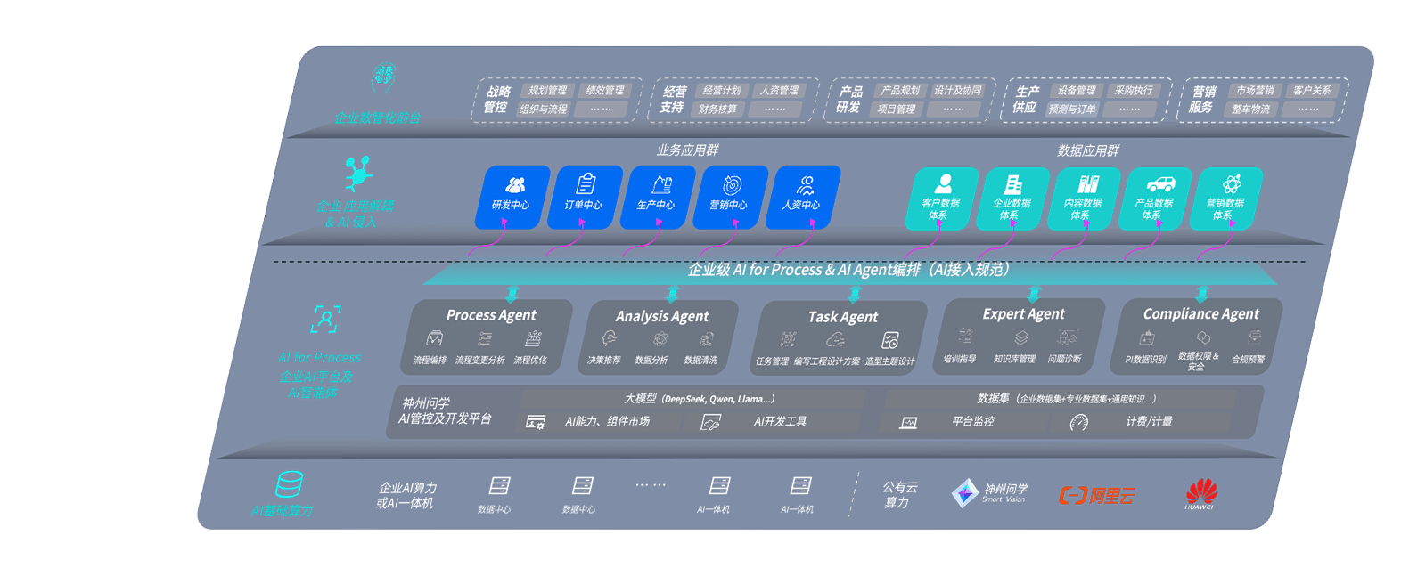 端到端的一站式AI工作空间深度融合了从企业战略规划到日常经营的全流程业务板块,,定向解决车企内部领域多、、、、部门多、、链条长、、、场景碎片化等难题,,,支持车企快速构建以AI为核心的生产力写作体系,,实现任务执行与AI能力的无缝集成与交互